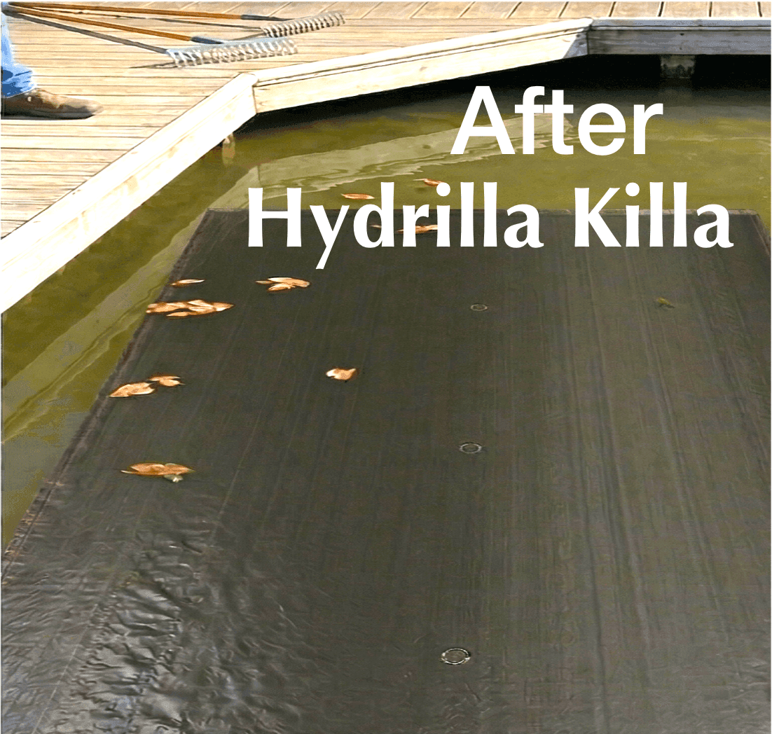 Just sunlight deprivation doing what cutting and chemicals can’t: Hydrilla Killa™ stops the Godzilla of lake weeds in its tracks.