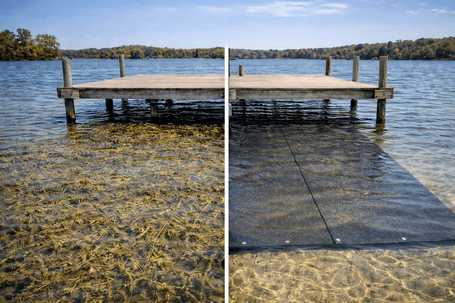 Hydrilla Killa™ is a heavy-duty lake weed mat designed to eliminate invasive weeds like hydrilla and milfoil. It works naturally by blocking sunlight, stopping weed growth at the source—no chemicals required.
